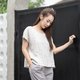 亚麻短袖上衣,饰有红色刺绣,侧边开衩设计,采用纯净亚麻纤维,透气性佳,着感舒适。