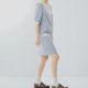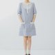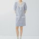 - 【泡泡棉】法式复古/蓝白条纹/拼接立领衬衫裙