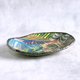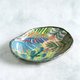 此为一畸形碗,饰以色彩缤纷的叶纹及蝴蝶图案。
