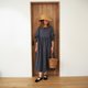作为衬衫式洋装着用时,建议将第一颗钮扣微开,让绑带自然垂坠。