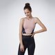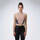透过较长版型与织带设计出具有包覆性又不失造型感的运动内衣