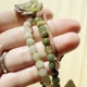 一抹温暖的棕色与橄榄绿交织的玉石手链,点缀着手工雕刻的玫瑰,并以双圈金绿色玉珠串成。 最后系上枫叶坠饰,承载着秋日沉静之美。🌿✨