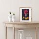 玫瑰图片需要一个框架。这幅画是无框出售的,在这里作为室内装饰展示。
