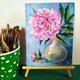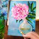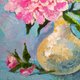 - Peony painting is original oil painting on canvas. The basis for a still life with a pink peony is a primed canvas on a panel. The Peony in a Vase is 9.1/2 by 7 inches or 18 by 24 cm. The picture is completely finished, sold unframed.