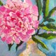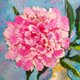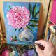 The picture with a peony is painted with oil paints with a brush and a palette knife.