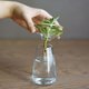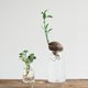 清澈的玻璃材质,有透明与蓝灰两种颜色,让人能够近距离观察植物草叶的延伸,以及水中根叶的生长;成为桌上或窗棂边的一隅风景。