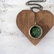 Lovely, unique and totally romantic, antique bronze locket arranged with real, dried green moss. This will be a perfect gift for you or your loved one! The diameter of the glass locket is 3cm and the chain length is 48cm/19".