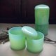 SHISEIDO官方原定该罐为妆台前的化妆棉与棉花棒小罐。或许别有巧思将其做为花器或糖果罐,让静谧的翠玉色使日常一瞬变得幽雅吧!虽此罐与Fire king的翠玉系列色泽相似,但其玻璃材质非耐热玻璃!若想作为水杯,请勿注入热水!