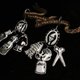 以电影“阿达一族”里厌世的星期三与古怪妈妈摩帝女为主题,这款耳环除了两人的头像,更纳入了她们最出名的所有物。星期三头像下挂着两瓶毒药及被砍了头的玛丽安东尼娃娃。魔帝女则挂着剪刀、剪断的玫瑰花、和宝宝Pubert的三脚连身衣。个性独特的两人化做耳环,为你的生活妆点些古怪的黑色幽默。