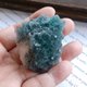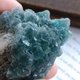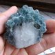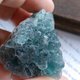 --萤石原矿型态多样,用手电筒从侧边打灯,是漂亮的蓝绿色