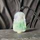 这件观音菩萨坠,是取自一件冰春彩料子,色泽淡雅,料子细腻,是很漂亮的一块料,坠子厚度不会很厚,所以佩戴起来不会有负担感,很适合贴身佩戴。