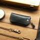/ 商品说明及故事 / weeken 维肯生活- Harley Black 手工真皮钥匙包,采用进口植鞣牛皮,并以手工精心车缝,细致工艺,坚韧耐用!采用黑色摔纹牛皮,自然挤压的皮革纹路,每一件都是独一无二,冷酷外表下蕴含着沈稳的心灵,质感卓越、低调内敛、历久不衰,让您在同事朋友之中更显与众不同,彰显个性化风格!内附黄铜环与短皮带,可吊挂汽机车钥匙与一般钥匙。植鞣天然牛皮,会随着时间与使用而产生色泽变化,好似美酒,越醇越芬芳~ 并可免费定制刻印英文字母,如名字过长建议使用缩写或姓氏。快来订做一个独一无二的个人真皮钥匙包吧~