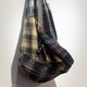 每款包袋均采用复古法兰绒格仔恤重新拼凑而成,并将衬衫的袖口改成袋嘅背带度,通过简单打结调整肩带长度。
