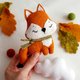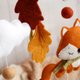 - Autumn terracotta woodland nursery crib mobile with the red fox, many leaves and clouds. Forest animal - the main mobile hero - can be changed. The baby name can be embroidered on the cloud.