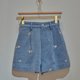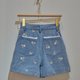 Embroidered Floral High Waisted Denim Shorts (Blue/Beige)