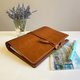 新品上市 !Bambini Nº 9 热销经典艾曼纽系列 -琥珀色。意大利植鞣经典油蜡皮革。琥珀色如同精酿啤酒般的色泽,明亮而不刺眼,令人难以抗拒。皮革本身有天然的纹路,每一张都是独一无二。此款艾曼纽绕带式皮革笔记本,特别加大的扣环部分,依旧优雅且细致。以米色法国 FIL DE LIN AU CHINOIS 麻线手工缝制。细致的手作皮革笔记本,经典耐用。宠爱你的书写时光。出货含内页纸张。