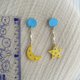 【童话梦】手工蓝黄月亮星星闪亮片-耳环耳钉耳线耳夹-可爱时尚简约个性欧美原创意优雅夜店宴会-伴手生日交换节日情人节礼物-可改无耳洞