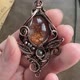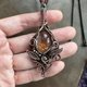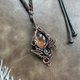 使用天然石,配以纯铜线,以绕线方式手作而成, 然后再加上复古做旧效果, 再抛光处理令花纹更具深度和对比.