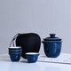 - 霁蓝釉-明宣德官窑上品三大釉色之一,蓝如深海、蓝如宝石,呈现匀净、稳定的祥和氛围。杯缘勾勒有浅浅的茶色,增添一股典雅的美丽。不论何时何地用此茶具品茶都似能嗅到咸咸海水味,满足你我徜徉大海之中的幻想~~