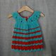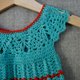 The blue and red crocheted chevron dress is perfect for an adorable little girl who (or whose parents) likes colorful clothes. It's made of fine merino wool which keeps the little girl warm and cozy.