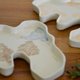以日月潭湖形,制作点心盘的造型,借由釉药铅笔绘插画图案,呈现日月潭不同样貌。 约最大宽14*长13*高1厘米