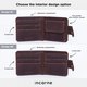 钱包采用真正的复古皮革制成。它有一个用于放置纸币的隔层,并用可靠的金属按钮闭合。内部设计有两种选择:第一种选项包括一个硬币口袋,而第二种选项则用3个卡槽替代了硬币口袋(见照片 #3)。