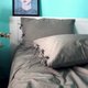 「Walking under the Moon 走在月光下”此迷雾灰系列,是从Neutral Grey中性灰的启发;为绑带枕头套与被套下方天然贝壳钮扣缀饰。