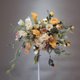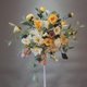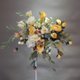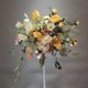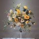 花材:米白绣球、深黄牡丹、深黄海芋、米白桔梗、浅粉玫瑰、白色迷你玫瑰、米黄点状花材、尤加利叶、藤叶。