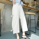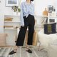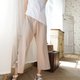 长裤选用了手感棉滑、不易皱、透气,穿着舒适的混合纤维布料制造。裤侧的折褶有调节带扣,可因应需求而调整,使穿着时更灵活。象牙白色的裤内另车有里布,配搭浅色内裤不会透。