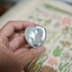 纯银材质、心型造型,手工压花装饰细致华丽。底部刻有制造商信息,