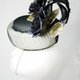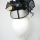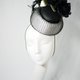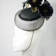 以厚棉朴造的帽子外包白色丝绸,再包上黑色网布和硬纱造出层次效果。
