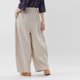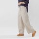 - 一条素面棉麻宽裤,感觉跟任何一件上衣都可以搭配 前面细车褶增加腿部线条,后方有两个大口袋 后腰钮扣设计可自行调整大小,穿高腰低腰不同风格