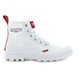 PALLADIUM PAMPA HI DARE 大胆系列标语军靴,以大胆为全新军靴系列命名,PAMPA HI的五片式鞋面结构设计原型导入创新设计,在鞋后织带、鞋舌与鞋身PALLADIUM LOGO鞋标以罕见红白潮流撞色设计,表现截然不同的新一代城市军靴