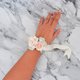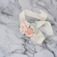 This corsage matches ivory with blush flowers backing with eucalyptus leaves.