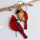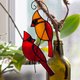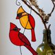 优雅的彩色玻璃鸟 - 真正的微型彩色玻璃窗! 采用蒂芙尼技术制成。 彩色玻璃片使用铜箔和锡相互连接。 有色玻璃。