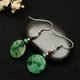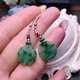 【名称】冰种飘绿花翡翠无事牌925纯银耳环