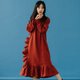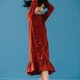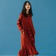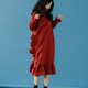 An evening piece trimmed with playful frills at the hem, Designed with long sleeves, this dress is made from a medium-thick linen. Cut for a voluminous A-line fit in a mid-length, it has a clean round neck, tied at the back of the long sleeves and discreet side-seam pockets.