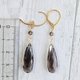 天然宝石耳环 烟水晶 18金PVD镀金防 过敏挂勾款