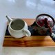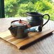 此款茶具托盘上方拉出线条,让茶具方便拿起