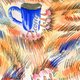 姜猫, 原画, 原创水彩, 原创艺术, 有趣的动物, 可爱的水彩, 可爱的画, 有趣的画, 咖啡艺术