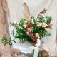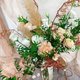 配色上是干燥色系,整体色系采秋天的粉橘色搭配米白色。部分花材可以轻松做成干燥花简单插花摆饰。