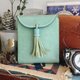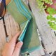 And pale bluish pastel green, is an impressive two-fold wallet the same color of the tassels swaying.