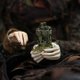 Apart from dyed fabrics and lace, some gears and other metal parts are used for the accessories. All of them totally handmade, including the robot in the Keeper's hands. The Dreamer's hat is made of beads and lace.