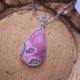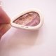 水滴型的菱锰矿,整块都是偏红色有特别的圈圈符号,背后是一晶洞,仔细观察有共生矿物的反射,一闪一闪的很有趣呢~