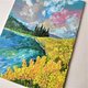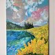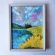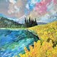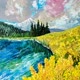艺术作品是一幅独一无二的鲜艳色彩画作。我的画是在帆布画板上用丙烯画的,主要是用调色刀。