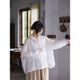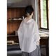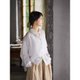 - 落肩式的长袖,袖子长长的防晒,袖口开叉结合纽扣,为了解穿更方便,两粒圆形的牛骨扣就显的更加温润。开叉的地方内外还有两个小圆片片儿。宽阔的大身,结合前短后长的微落差,形成高级的慵懒感,衣身的量足够让你身体都放松,后片的工字褶带来超自由的闲散气