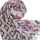 印度着名的印染工艺与手工刺绣结合,整条披肩上美丽繁复的印染图案,再用各色绣线包着图案边框刺绣,下方的配色钢琴边也是类卡尼的魅力之一,感受到缤纷精致手工的魅力,一次可以欣赏到两种传统工艺的满满细节,值得收藏
