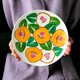 It is a device that draws yellow camellia flower and green leaf on a deep dish.