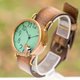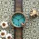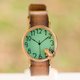 OLIE的父亲采用独创的木版染色制作出带有木头纹路的浅茶色表带,更加凸显出亮绿色玻璃的温暖气息。