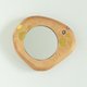 This wooden hand mirror was created with the image of a cell floating in the sky or the sea.